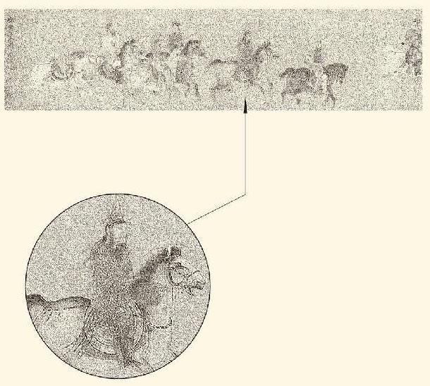 汉名李赞华的耶律倍是个卓有成就的书画家,这是他所绘的《东丹王出行图》, 绢本设色, 纵27.8厘米,横125.1厘米,现藏于美国波士顿艺术博物馆。